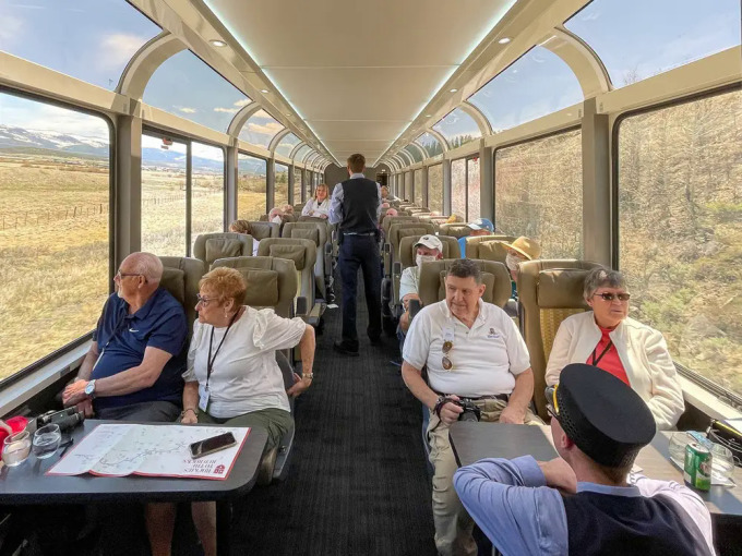 Đi một chuyến tàu Rocky Moutaineer trải nghiệm sang chảnh mà du khách nên thử, để nhìn ngắm khung cảnh tuyệt đẹp của Canada và Mỹ lướt qua những ô cửa kính. Lonely Planet miêu tả hành trình này là "một trong những trải nghiệm tuyệt hảo của thế giới". Chuyến tàu hai ngày một đêm từ Denver, Colorado đến Moab, Utah có giá từ 1.999 USD. Hãng tàu này còn có khoang GoldLeaf - tương đương hạng nhất trên máy bay, với giá tour lên đến 3.650 USD cho năm đêm.