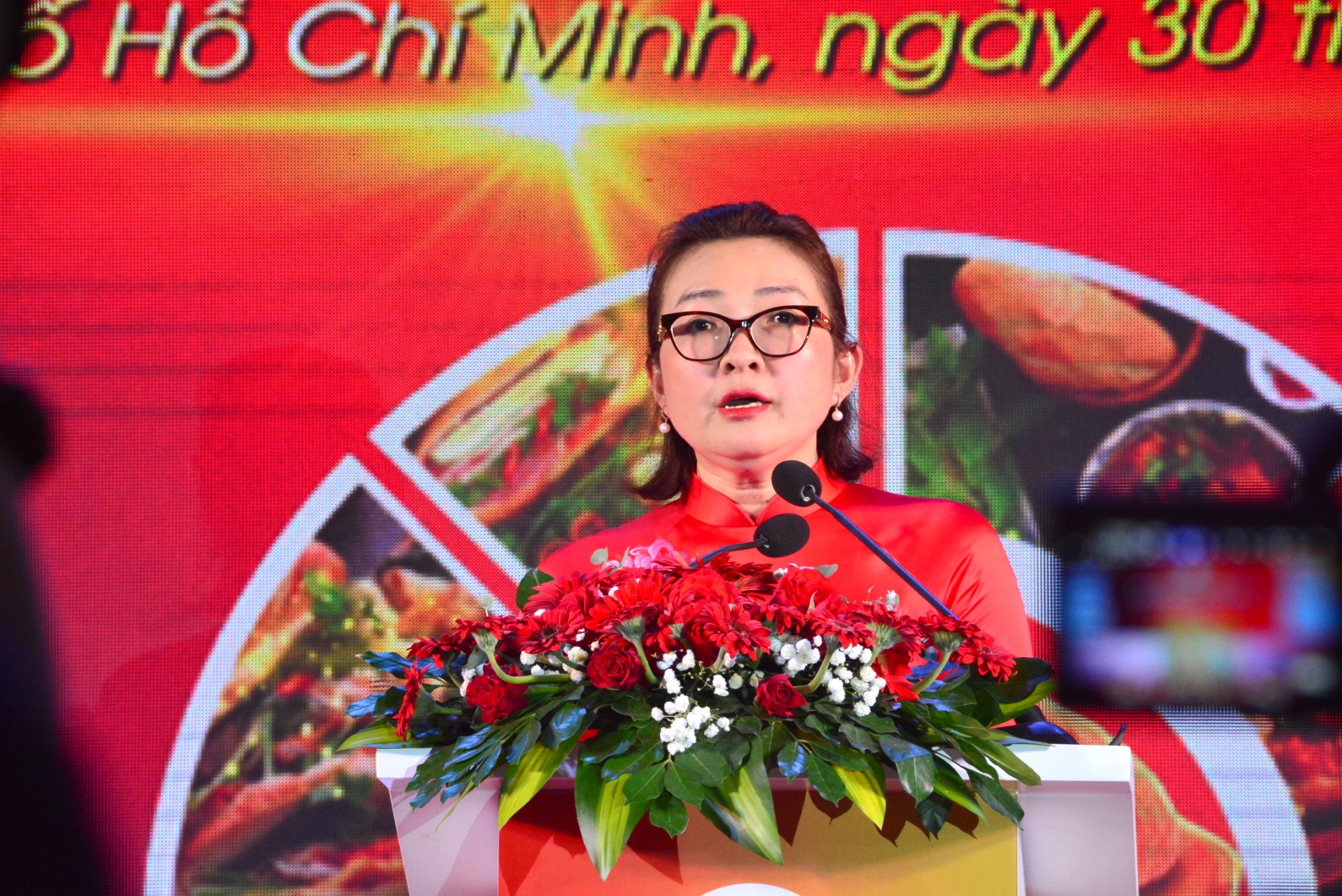 Bà Nguyễn Thị Khánh - Chủ tịch Hiệp hội Du lịch TP Hồ Chí Minh phát biểu khai mạc Lễ hội