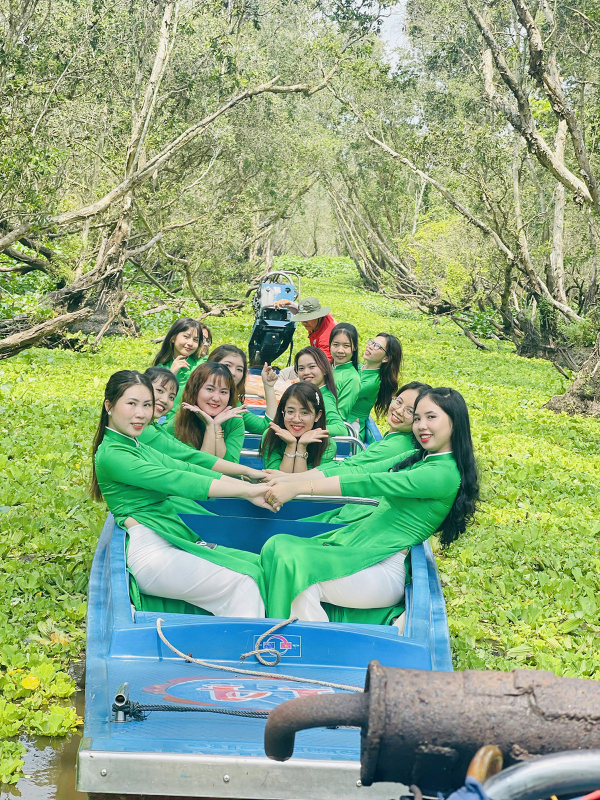 Hội chị em xúng xính áo dài say sưa sống ảoVới diện tích rộng lớn lên đến 845 ha, đại đa số loài cây ở đây là tràm kính thưa các loại, từ cao niên cổ thụ cho đến những cây con mới nhú. Chúng cứ thế mà sinh sôi nảy nở qua bao mùa thay lá, Tràm cao niên thân xù xì nhuốm màu thời gian trầm ngâm nhìn những cây con vươn mình đón nắng. Thế nhưng tất cả đều có chung sứ mệnh thanh lọc không khí, tháo chua rửa phèn cho đất, và cho ra hoa ươm mật ngọt cho đời.