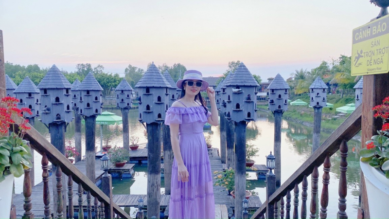 Có thể kể đến như các khu nhà chức năng, cụm tiểu cảnh, khu nhà hàng, bến tàu, lâu đài bồ câu, cầu tre vạn bước... Một góc tinh tế khác đáng chấm 10 điểm cho cách làm du lịch ở đây chính là restroom sạch sẽ, thoáng mát du khách có thể thay xiêm y, có gương lược để make - up, chỉnh trang trước khi bắt đầu hành trình sống ảo của mình.