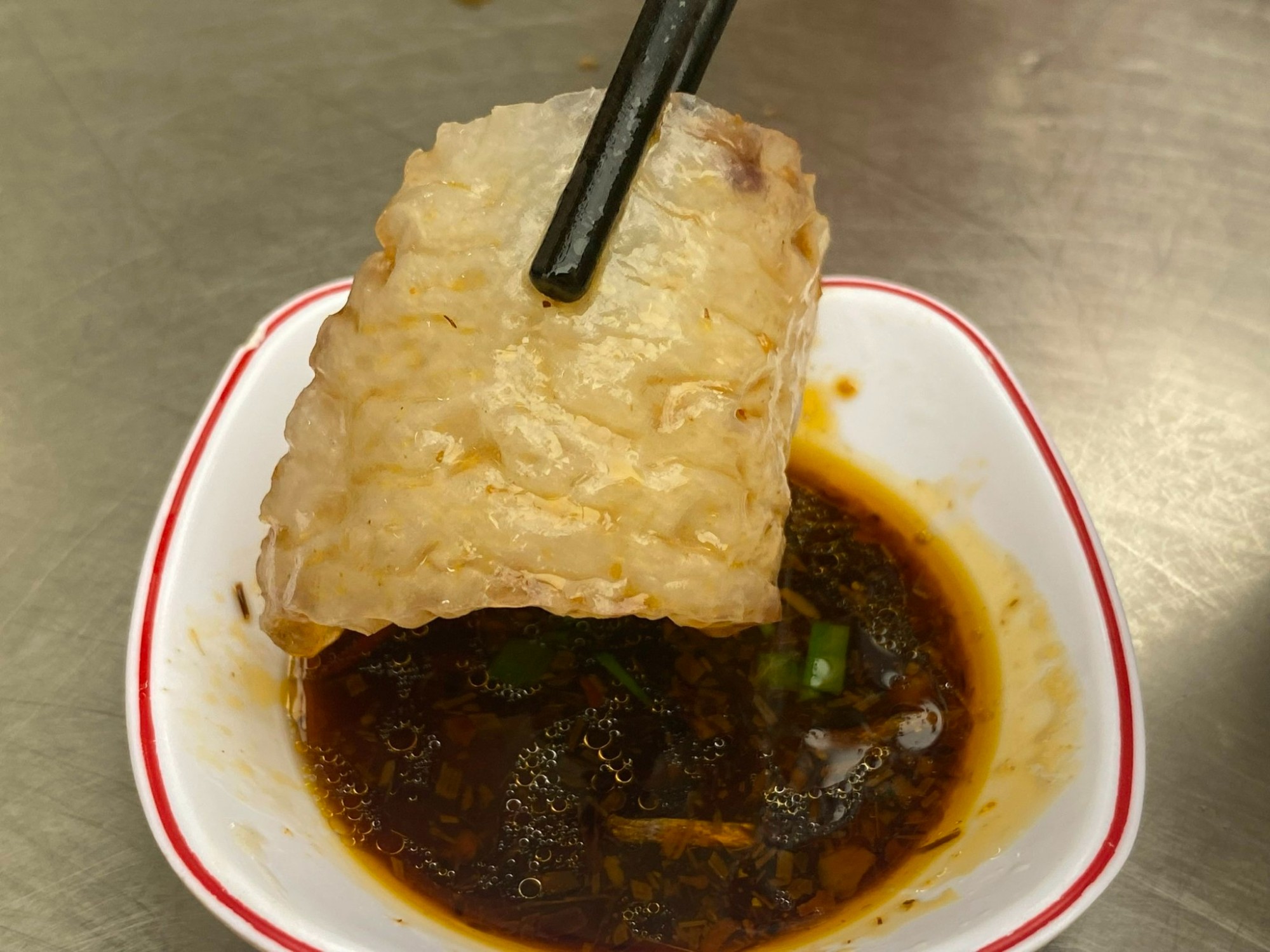 Để tăng thêm độ đậm đà, thực khách có thể pha một ít nước tương với giấm Tiều và sa tế. Món thịt heo giòn này là thứ gây "thương nhớ" trong văn hóa ẩm thực của người Hoa (ảnh: MINH ĐĂNG)Một phần sủi cảo khoảng 60.000 - 70.000 đồng đủ giúp thực khách no căng.