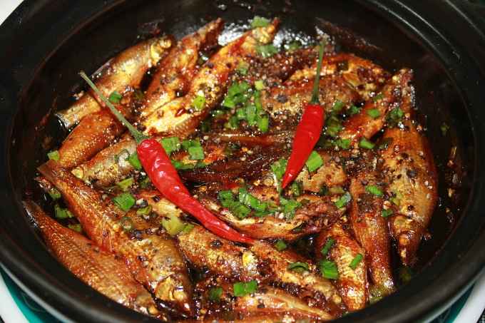 Cá linh còn kho tiêu - một trong những món ngon mùa nước nổi ở An Giang. Ảnh: Hà Lâm Gỏi lá sầu đâu