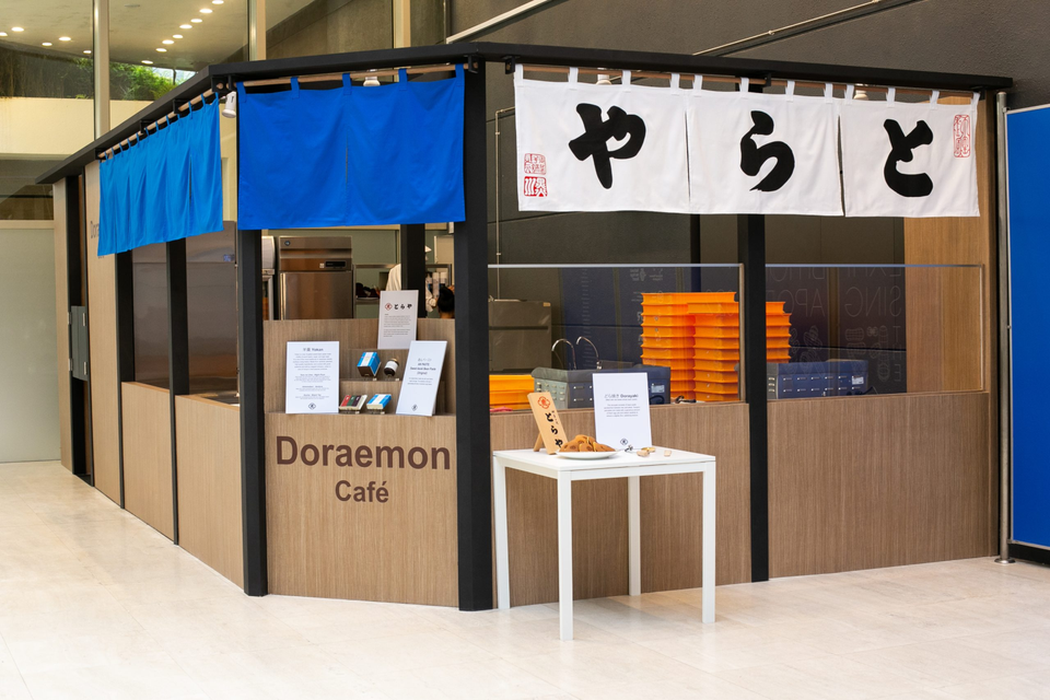 Quán cà phê theo chủ đề Doraemon của Toraya Confectionery. Ảnh: National Museum of Singapore. Những ai muốn mang về nhà một tác phẩm của bộ truyện có thể mua các bộ sưu tập Doraemon cùng với hàng hóa dành riêng cho The Doraemon Exhibition Singapore 2022 và Bảo tàng Fujiko F. Fujio. Túi tote, cốc và văn phòng phẩm cũng được bày bán.