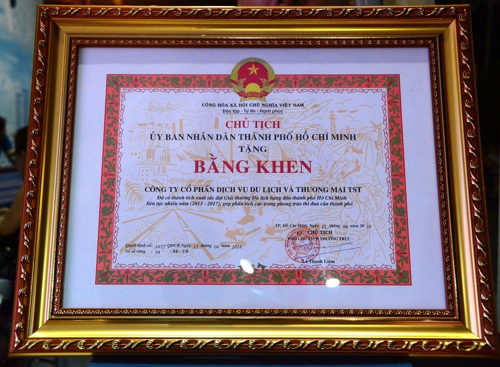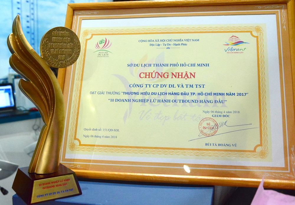 Tối ngày 14/4/2018, trong khuôn khổ sự kiện Ngày hội Du lịch Tp.Hồ Chí Minh 2018 do Sở Du lịch TP.HCM phối hợp cùng Hiệp hội Du lịch Tp.HCM (HTA) tổ chức, công ty du lịch TST tourist vinh dự được trao giải thưởng “Top 10 doanh nghiệp lữ hành Outbound hàng đầu Tp.HCM năm 2017” tại Lễ Tôn vinh Thương hiệu Du lịch TP. Hồ Chí Minh 2017. Đặc biệt, TST tourist còn vinh dự đón nhận bằng khen Ủy ban nhân dân Thành phố cho đơn vị đạt Giải thưởng Du lịch Tp.HCM 5 năm liên tục, từ năm 2013 đến năm 2017.