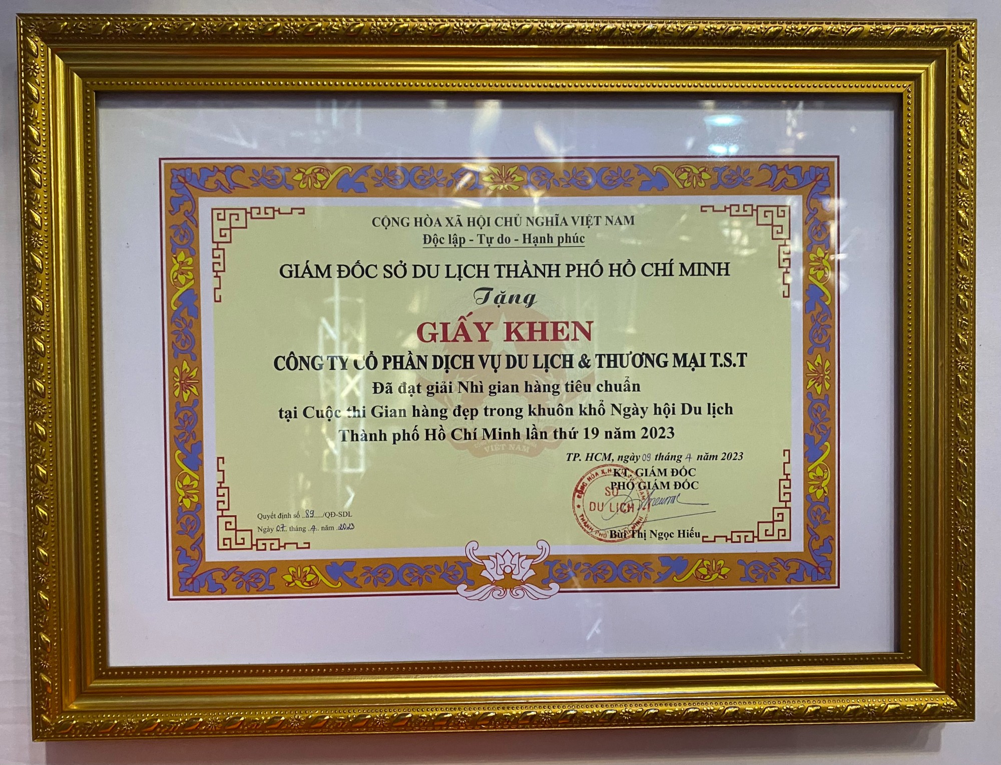 Tại Lễ Bế mạc NGÀY HỘI DU LỊCH TP.HCM LẦN THỨ 19 NĂM 2023, TSTtourist vinh dự được trao tặng giải Nhì Gian hàng tiêu chuẩn tại Cuộc thi Gian hàng đẹp trong khuôn khổ Ngày hội Du lịch TP.HCM.