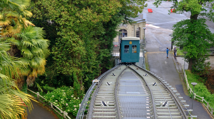 Nếu đã di chuyển mỏi chân, du khách có thể lên chuyến tàu Funiculaire de Pau, nối Boulevard des Pyrénées và Château de Pau, nằm ở thung lũng Gave de Pau. Chỉ là chuyến đi ngắn, nhưng cũng đủ giúp du khách mãn nhãn với khung cảnh thiên nhiên tuyệt đẹp hai bên đường. Ảnh: Eurotunnel