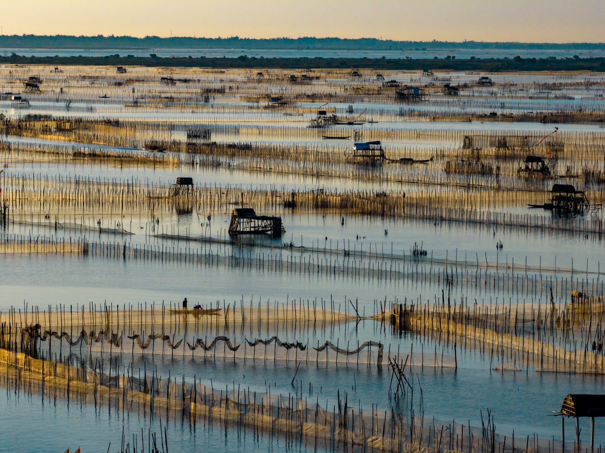 Thời điểm đẹp nhất trong ngày để khám phá khu đầm này đó là sáng sớm, cảnh bình minh rất thơ mộng, độc đáo, khá khác so với các đầm nước khác bởi hệ thống chắn sáo và những căn nhà chồ - Ảnh: HACHI