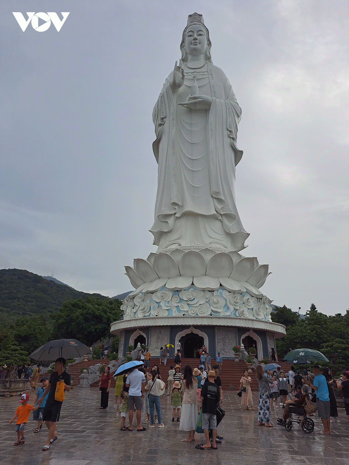 Ngày hôm sau, do gia đình anh lái xe trẻ có việc đột xuất, chúng tôi thuê một bác trung tuổi đưa đón đến các điểm tham quan. Khi đi được 1-2 điểm thì trời đổ mưa nên mọi người trong đoàn, nhất là trẻ con có ý muốn về khách sạn nghỉ ngơi. Nhưng khi nghe bác lái xe kể rằng, ai đã đến Đà Nẵng thì không nên bỏ qua chùa Linh Ứng ở Sơn Trà. Với giọng miền Trung trầm ấm, bác tài xế kể về sự tích của ngôi chùa, về quá trình xây dựng và điểm độc đáo là tượng Phật Quán Thế Âm Bồ Tát cao nhất Đông Nam Á với chiều cao 67 m, lòng tượng có 12 tầng, đã được UNESSCO công nhận… Câu chuyện của bác cuốn hút đến nỗi tất cả mọi người đã thay đổi quyết định dù trời đang mưa to.