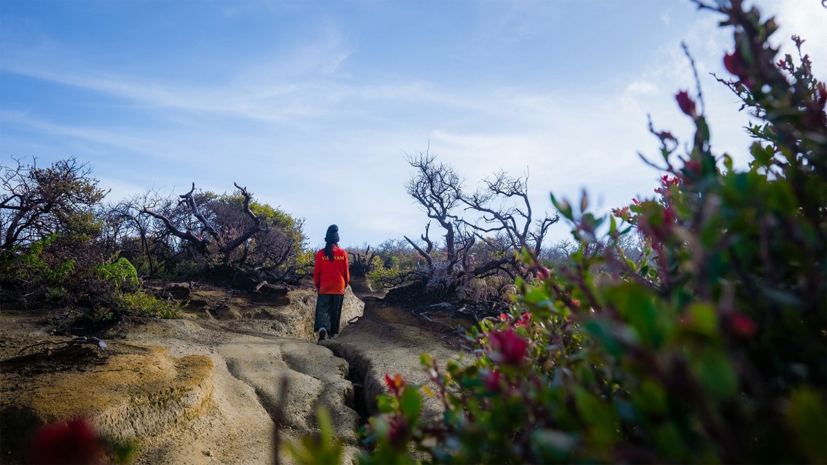 Chặng đường họ leo gồm 3,5 km đường bằng, 500 m đường núi. Những con dốc 45-60 độ thử thách lòng kiên nhẫn của mọi người. "Bóng tối bao phủ, nhiệt độ lúc đó chỉ tầm 5 độ C. Nhiều người cùng leo núi đã phải dừng lại để nôn hoặc quay đầu với các triệu chứng nôn nao, do thay đổi độ cao, nhiệt độ và mùi lưu huỳnh nồng nặc", anh Thái kể.