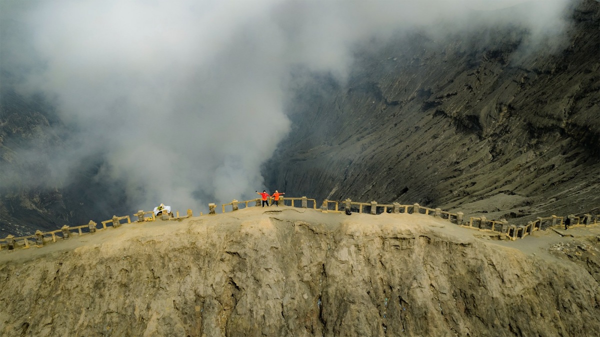 Từ miệng núi lửa đi lên khi trời còn tờ mờ tối, phải dùng đèn pin để di chuyển, đến khi mặt trời lên cao, hai vợ chồng vỡ òa trước thiên nhiên hùng vĩ. Từng ngọn núi hiện lên lúc rõ, lúc mờ sau làn mây di chuyển trên bầu trời, bên dưới là miệng hồ màu xanh ngọc.