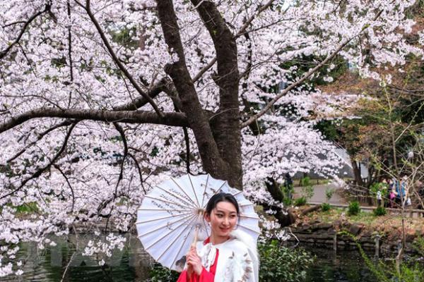 Du khách chụp ảnh dưới tán hoa anh đào tại Tokyo, Nhật Bản. (Ảnh: AFP/TTXVN) Theo báo cáo du lịch và phát triển du lịch năm 2021 của Diễn đàn Kinh tế Thế giới (WEF), Nhật Bản đứng đầu danh sách các điểm đến yêu thích, mặc dù nước này đã phải ngừng đón du khách quốc tế do đại dịch COVID-19.