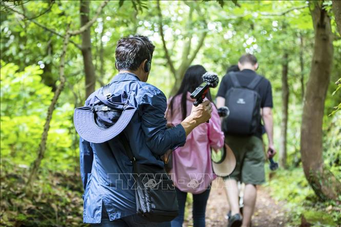 Du khách trải nghiệm Sound Walk trên những con đường mòn quanh co trong rừng nguyên sinh. Ảnh: Anh Nguyên/PV TTXVN tại Hàn Quốc Đi du lịch không ảnh hưởng tới tài chính